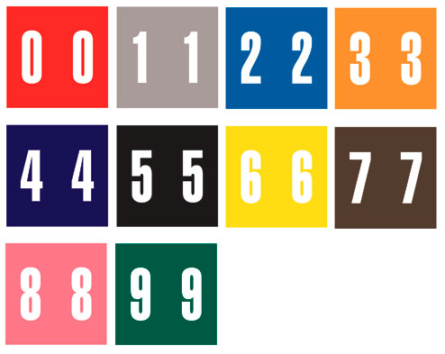 These large numeric labels feature a wrap-around solid color bar and a reversed color numeric character.