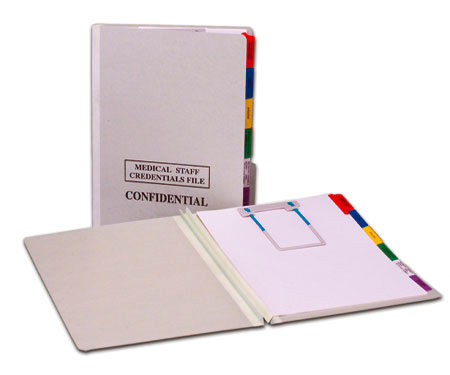 We provide two style with credential index tab titles: end tab & top tab configuration. Each heavy-duty pressboard folder includes our pre-printed credential Index set and our innovative E-Z File fastener which allows instant viewing access and adding, deleteing and copying a snap! Our credentail folder includes: our heavy-duty pressboard folder, specialty dividers and E-Z File Fastener (in your requested position).