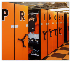 Franklin Mills high-density storage systems can be designed to store virtually any type of sporting equipment in less than half the space of convention storage. Our systems are of choice among university athletic departments and professional sports for managing their equipment, personal gear, and medical supplies. Contact the experts at Franklin Mills for personal assistance in designing a storage solution for your unique application.