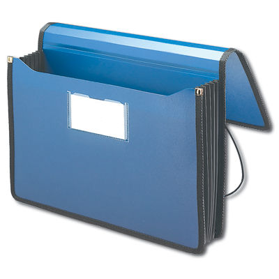 Description: Acts as a portable attaché case! Super durable polypropylene wallet expands to 5 1/4". Generous width allows top tab file folders to fit without bulging side gusset. Sewn-in, full perimeter reinforced black rubber gusset. Clear pocket on front includes index card insert.
