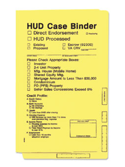Due to recent changes by the FHA, some mortgagees are to send hard copies documents to the FHA in yellow HUD case binder as per our stock item, with the balance being processed electronically.