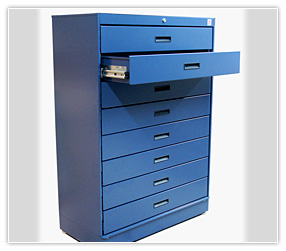 Our space-efficient cabinets offer drawers and shelves that can be easily reconfigured as media formats change. Each drawer includes full-width horizontal drawer pulls, infinitely adjustable dividers, and drawer interlocks for safety. An optional security lock can be added for sensitive material. Our cabinets are designed for quick installation and easy relocation.