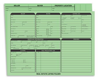 Description: Real estate folders with pre-printed headings come in 6 bright colors to designate a specific need , customer or project. Keep track of showings, advertising and more. Includes a handy closing checklist for vital papers. Plenty of expansion to hold important documents & paperwork. Letter Size: 11 3/4" X 9 5/8". Colors: gray, yellow, blue, red, green & lavender. Click here see a close-up of the folder.