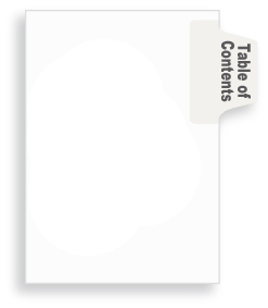 Description: Individual Table Of Contents tabs. Side tab, 3rd Position of 1/5th cut. 80# white paper stock with clear rip-proof reinforced tabs. Tabs are printed on both sides. Binding edge is unpunched so indexes can fit any binding system. Franklin Mills dividers are Made in the USA.