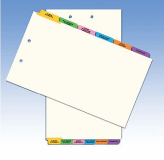 Pre-printed Title & Escrow tab divider set - Organize your portfolios by keeping all documents in the proper order and tabbed for quick reference. Each tab is reinforced with colored mylar laminated for protection and strength. Legal Size index tab dividers side or bottom tab. All sheets are 2 hole drilled for easy attachment to fasteners. Collated into sets. 100 sets per box.