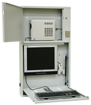 This wall desk features two areas to store your CPU, monitor, keyboard and mouse. The two-lock system provides extra security. Colors: Beige & Light Grey (Contact Franklin Mills for custom colors). Construction: Heavy gauge steel. Size: 42"H x 241⁄2"W x 4"D. Contact Franklin Mills for special pricing.